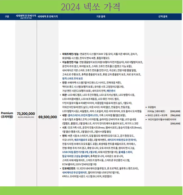 또한 기존 넥쏘에서 약 97% 고객의 선택을 받은 프리미엄 트림 한 가지로 2024 넥쏘를 운영하며 기존 프리미엄 트림에 포함되어 있던 ▲와이드 선루프 및 루프랙과 ▲19인치 휠&타이어를 선택사양으로 운영하는 등 트림 구성을 최적화했다고 하는데 잘 살펴보실 필요가 있겠습니다.