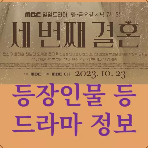 MBC 새 드라마 세번째 결혼은 2023년 10월 23일부터 〈하늘의 인연〉의 후속으로 방영 예정인 일일 드라마입니다. 장르는 복수 로맨스극이에요.