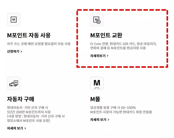 M포인트는 바로 현금화할 수 없어 다른 카드를 사용하거나 M포인트 사용처에서 계산할 때만 사용하셨다면 정확한 현금화 방법을 확인하시는 게 좋습니다.