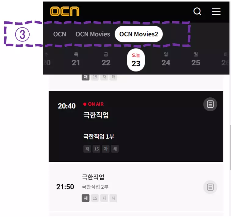 날짜별로도 ocn movies2 편성표를 확인하실 수 있답니다.