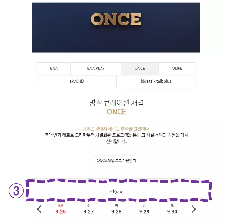 - ③번처럼 편성표를 보실 수 있습니다.