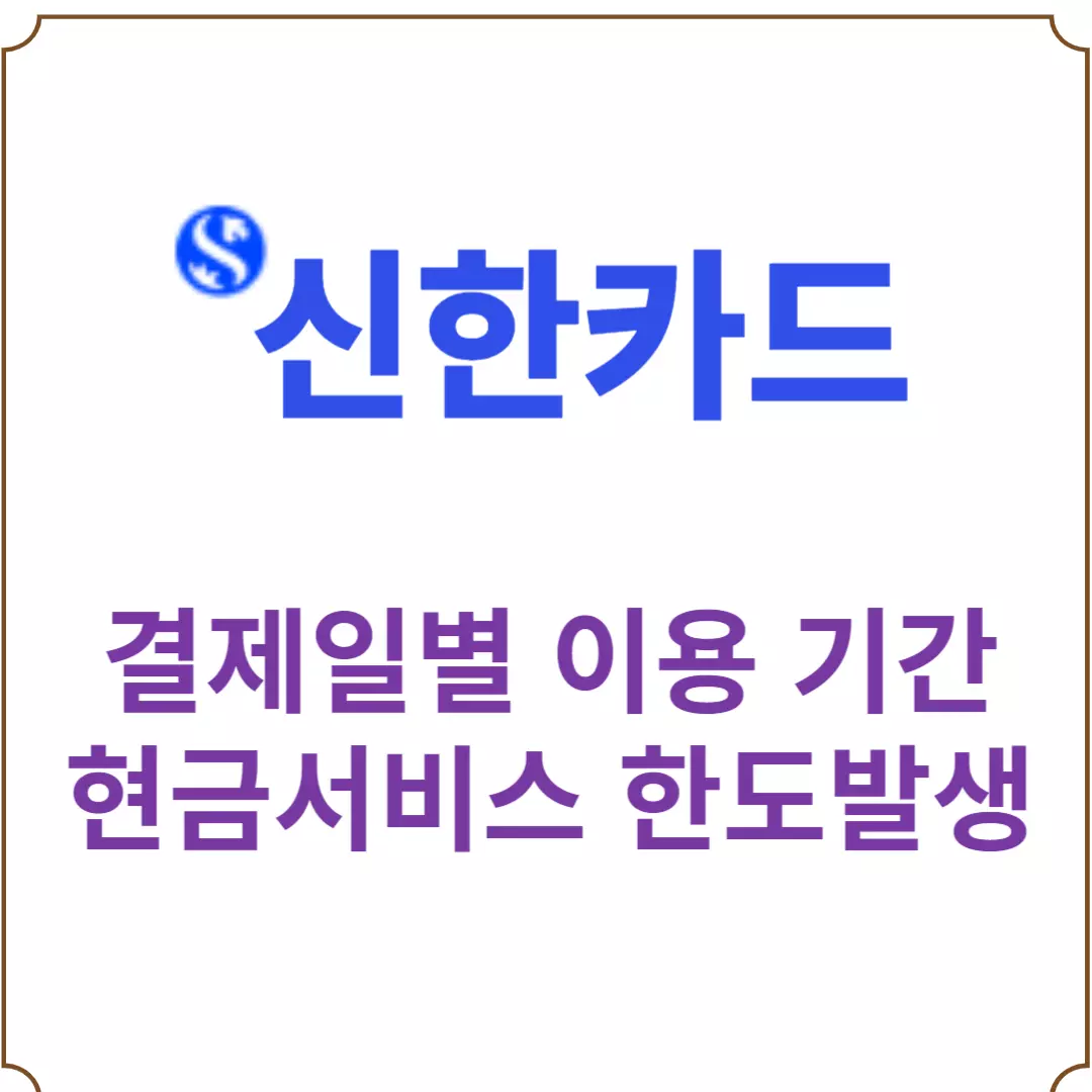 신한카드의 결제일별 이용기간을 개인카드와 법인카드를 구분해서 알아봤습니다. 내용을 확인하시어 계획적인 카드 사용이 되셨으면 합니다. 또한 현금서비스 한도발생일에 대해서도 체크하시어 이용에 착오가 없으시길 바랍니다.