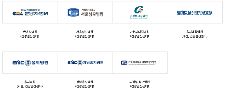 분당 차병원, 서울성모병원, 가천의대길병원, 을지대학병원, 을지병원, 강남을지병원, 가톨릭대학교 의정부 성모병원